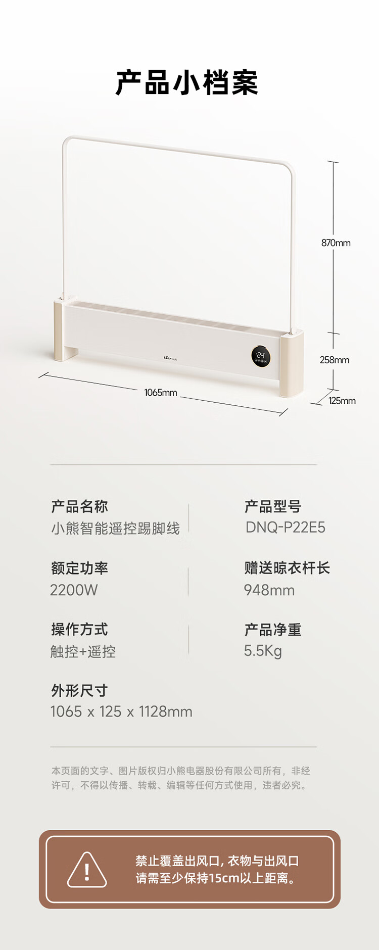 商品名称:小熊(Bear)电暖器 2200W DNQ-P22E5(带烘干架)