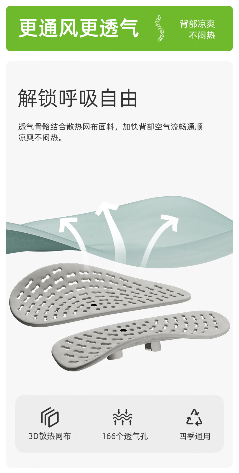 面料材质 :一体成型PP材质3D加厚散热网布