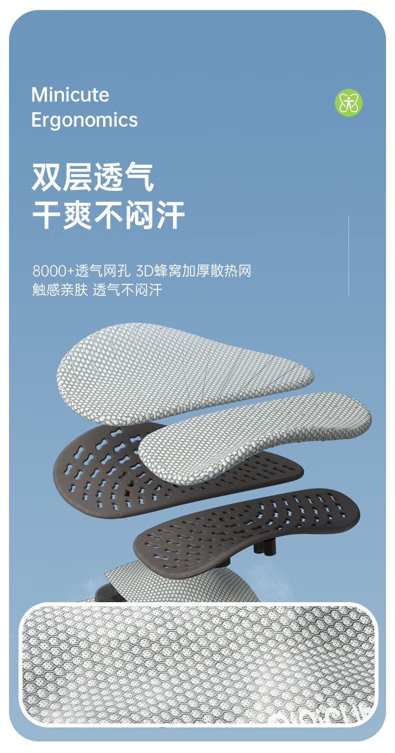 面料材质 :一体成型PP材质3D加厚散热网布