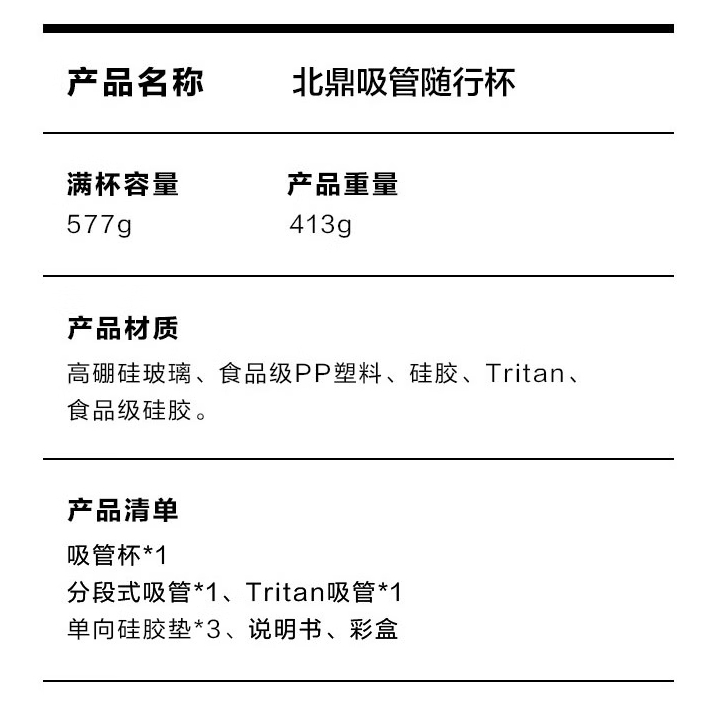 商品名称:北鼎(Buydeem)吸管玻璃随行杯 500ml