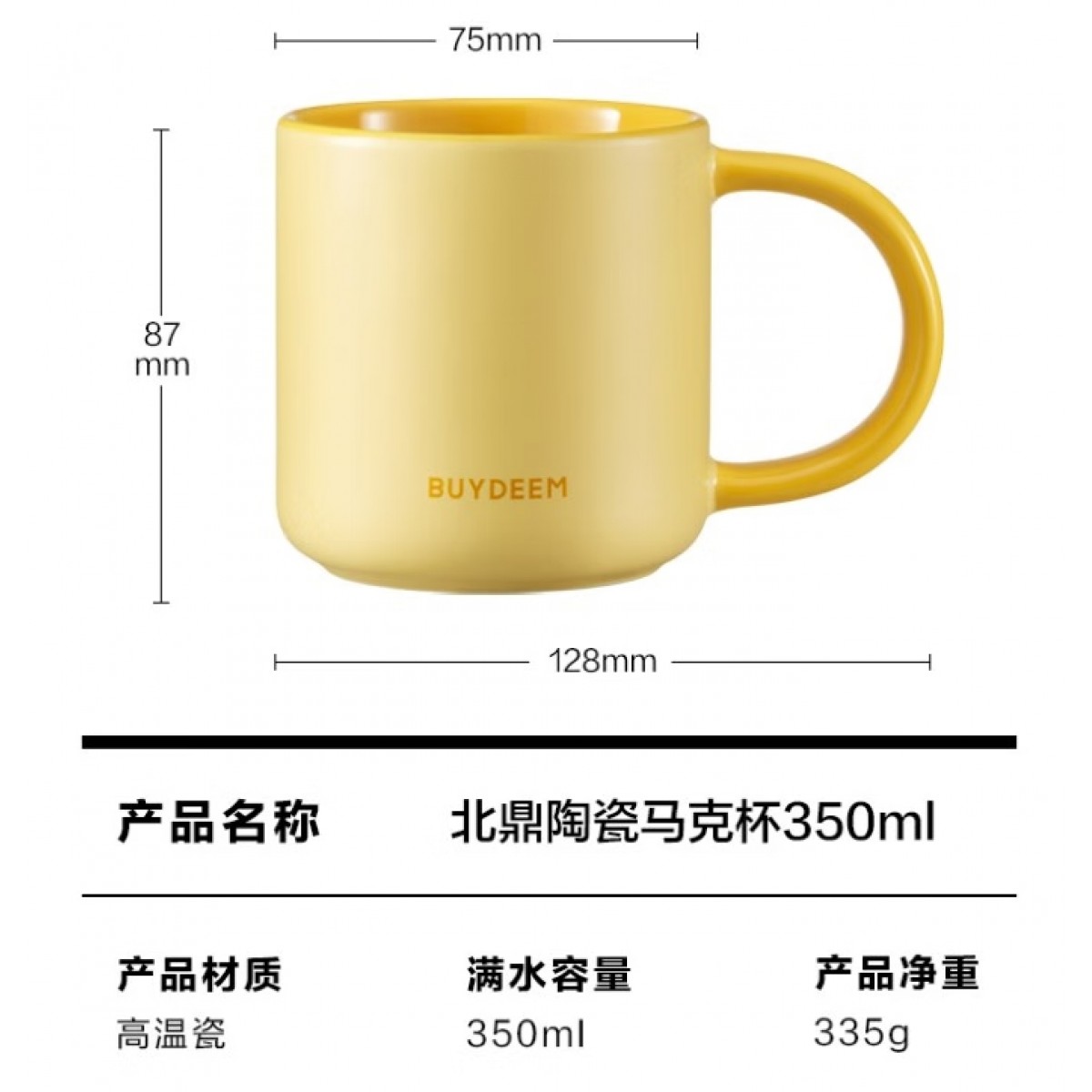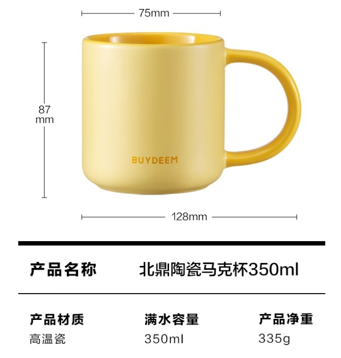 商品名称:北鼎 陶瓷马克杯-含硅胶杯盖 350ml CD1018