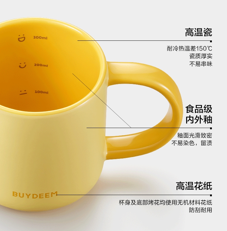 北鼎 陶瓷马克杯-含硅胶杯盖 350ml CD1018