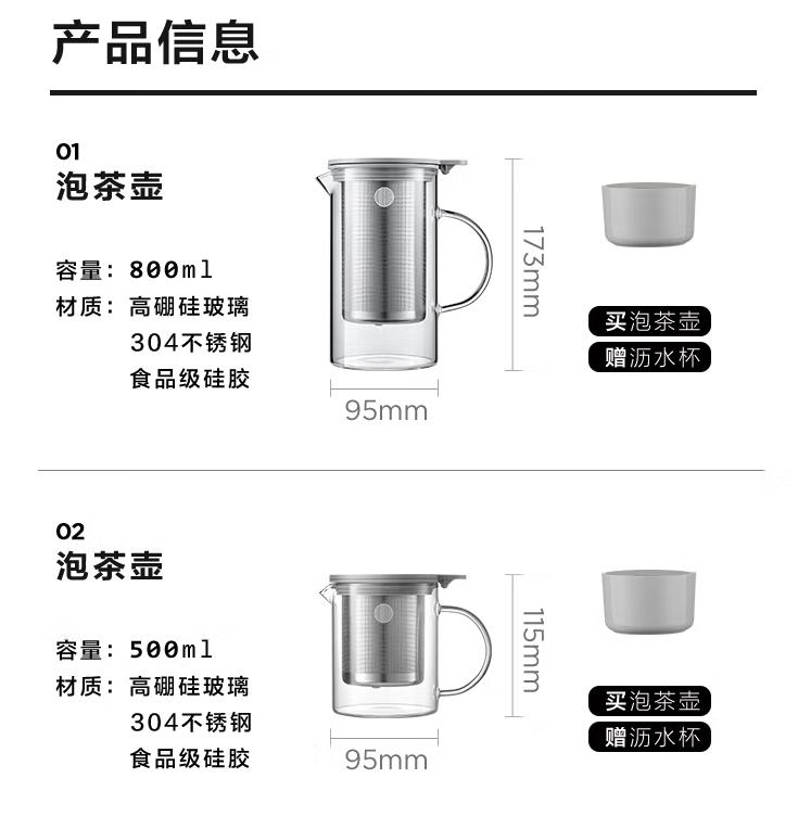 商品名称:北鼎(Buydeem)玻璃泡茶壶办公室泡茶器 800ml