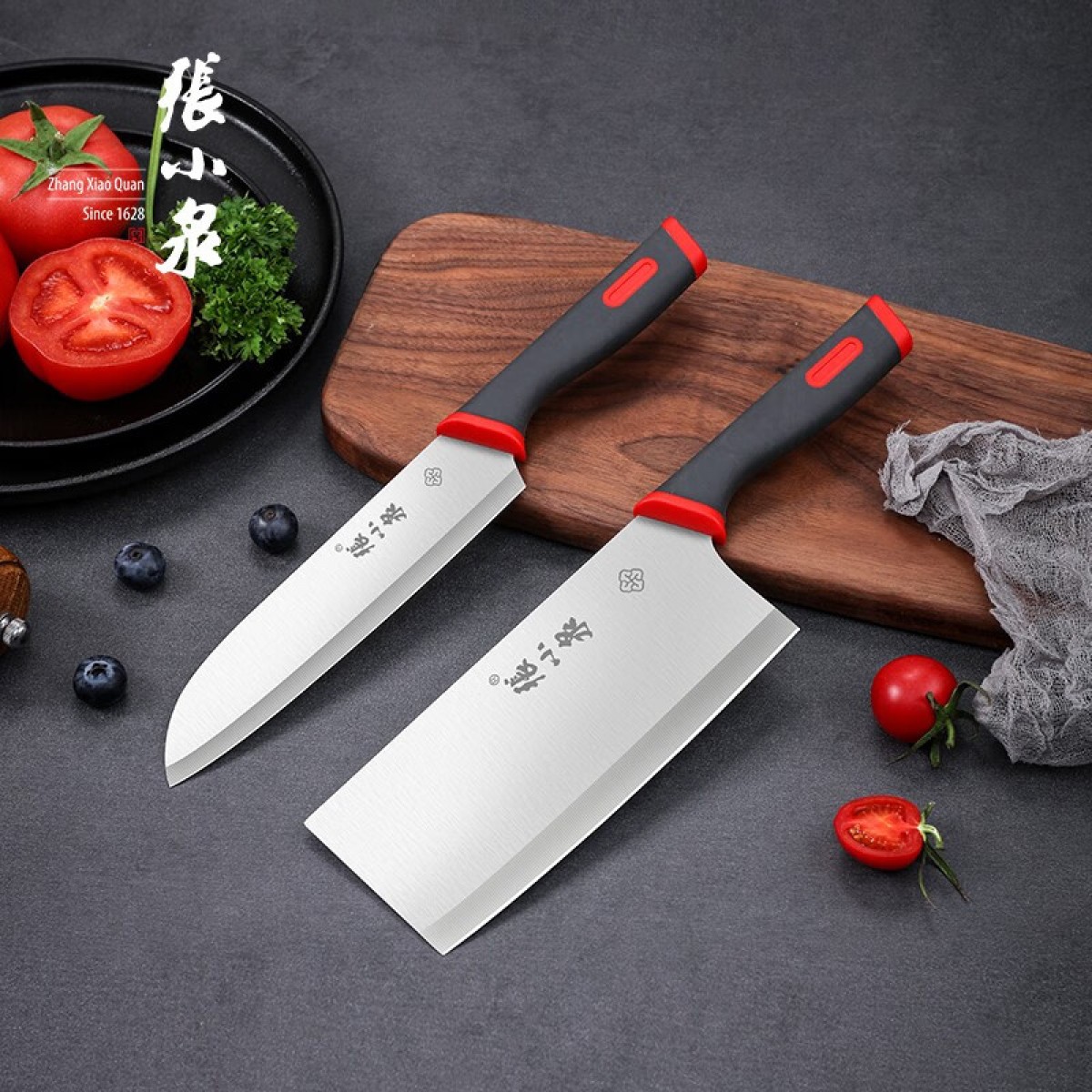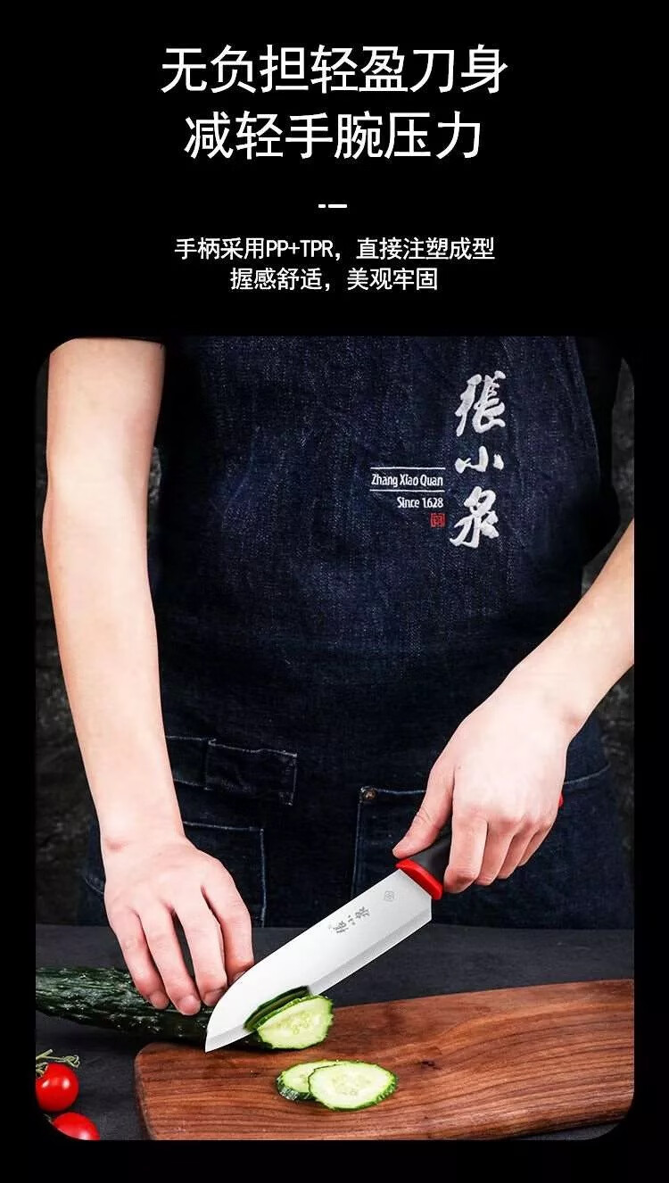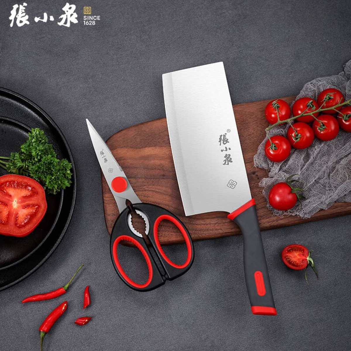 张小泉 红韵系列刀具五件套切片刀180mm/小厨刀175mm/水果刀90mm/厨房剪212mm/刀座