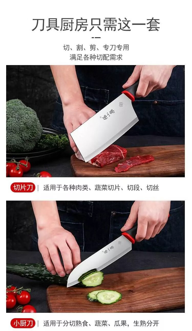 切片刀180mm/小厨刀175mm/水果刀90mm/厨房剪212mm/刀座