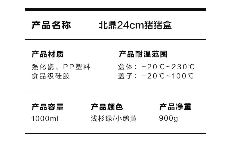 商品名称:北鼎 陶瓷猪猪饭盒便携保鲜盒24cm CT3008