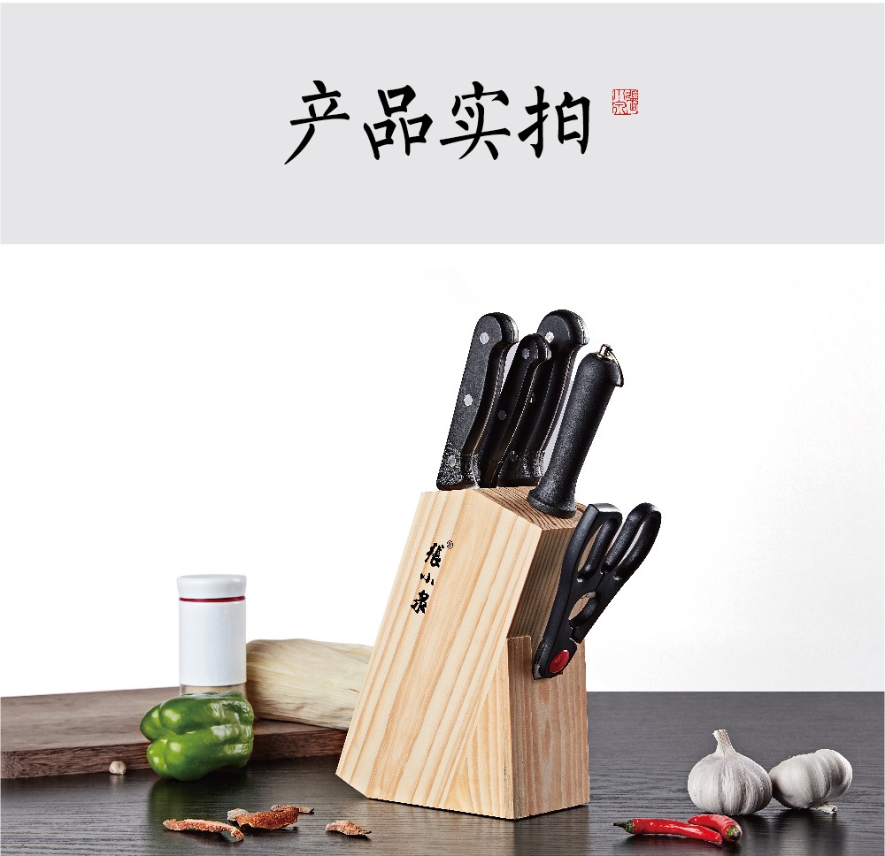 切片刀301*85mm,小厨刀299*41mm,水果刀213*20mm,厨房剪202*81mm,磨刀棒300*9mm,刀座202*155mm