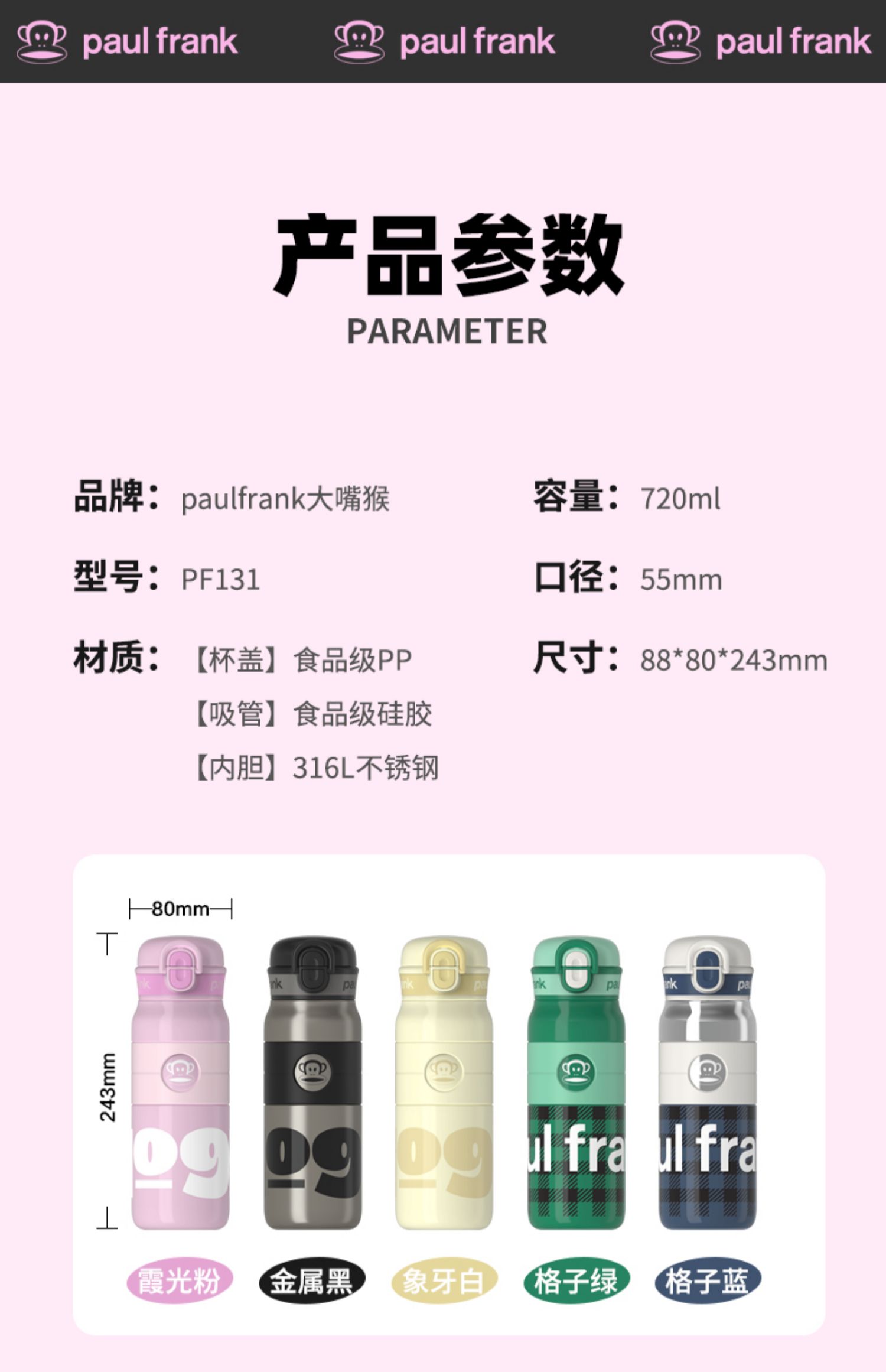 商品名称:大嘴猴 真空保温杯 720ml PF131-720