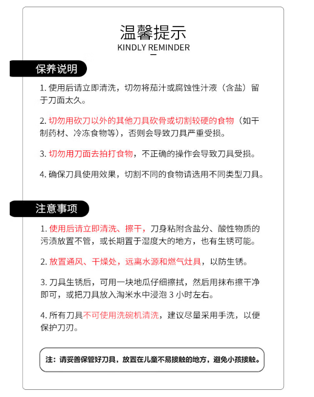 配置清单 :三德刀