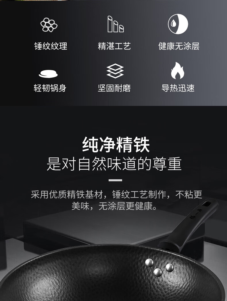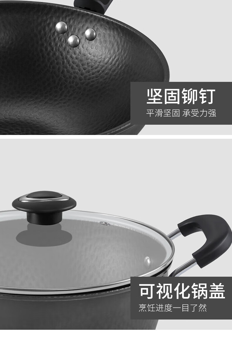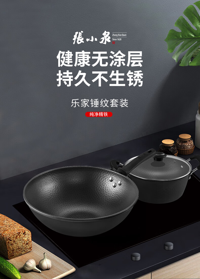张小泉 精铁锤纹锅具二件套 炒锅32cm 汤锅22cm C35392000