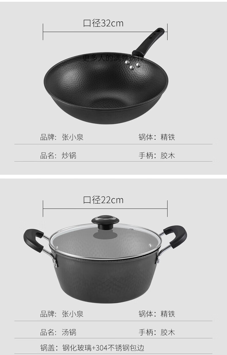 商品名称:张小泉 精铁锤纹锅具二件套 炒锅32cm 汤锅22cm C35392000