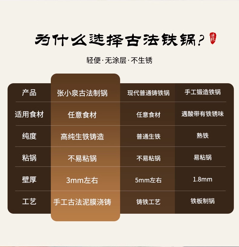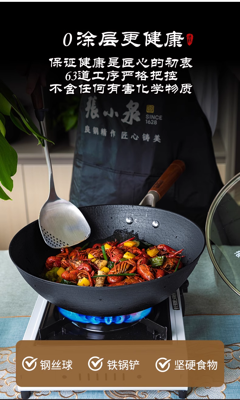 张小泉 古法匠铸铁锅(平底)32cm C32570100