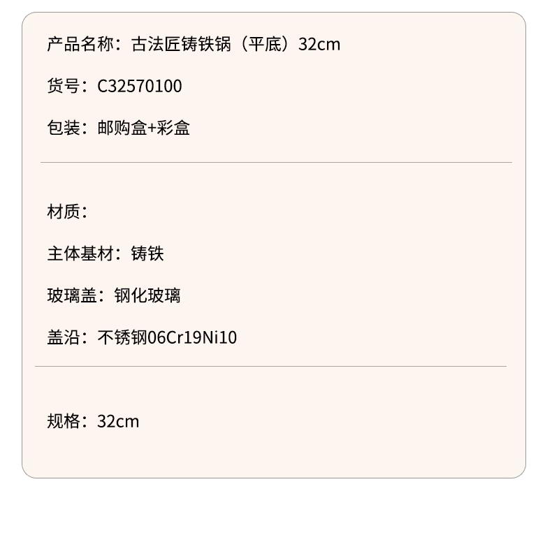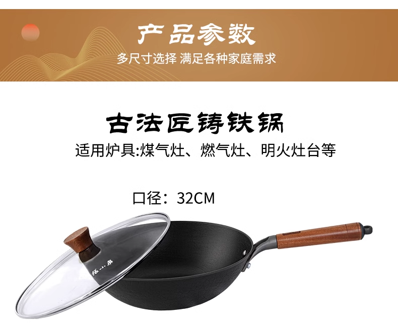 商品名称:张小泉 古法匠铸铁锅(平底)32cm C32570100