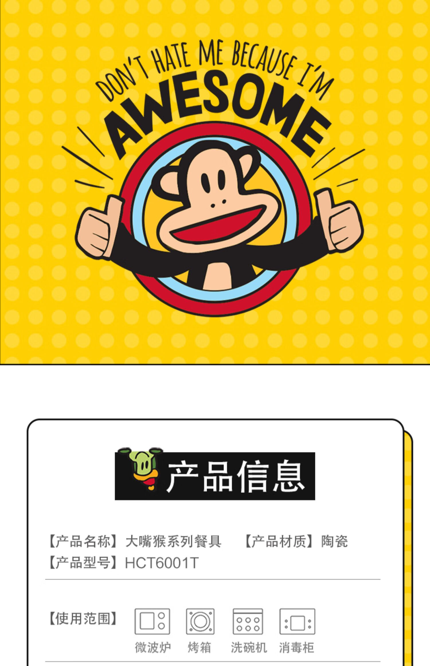 商品名称:大嘴猴 碗碟套装 (12件套)HCT6001T