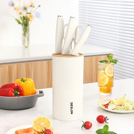 配置清单 :切菜刀、三德刀、水果刀、厨房剪、圆桶刀座