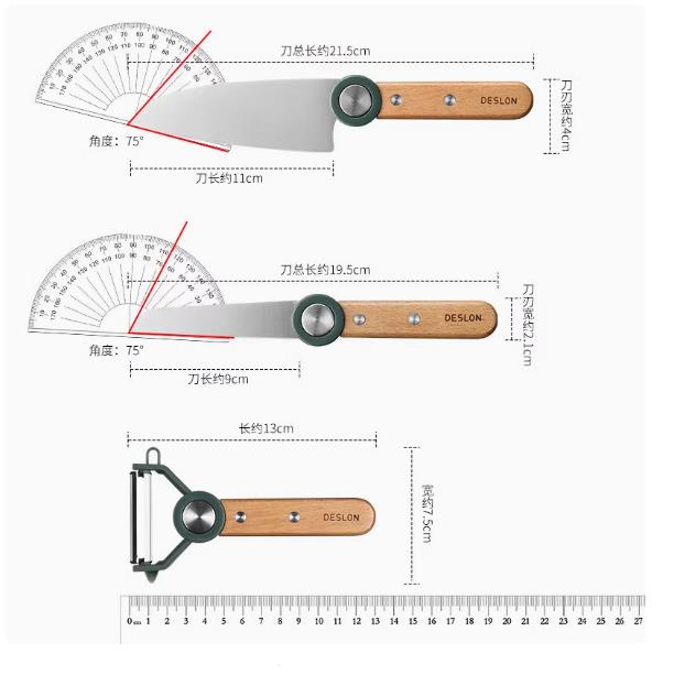 产品尺寸 :水果刀200*27mm 果蔬刨130*75mm