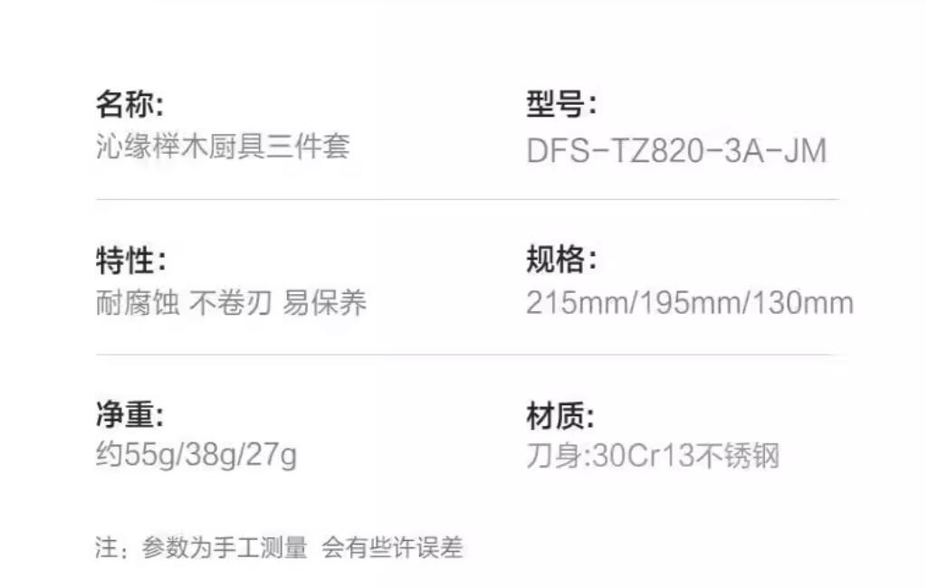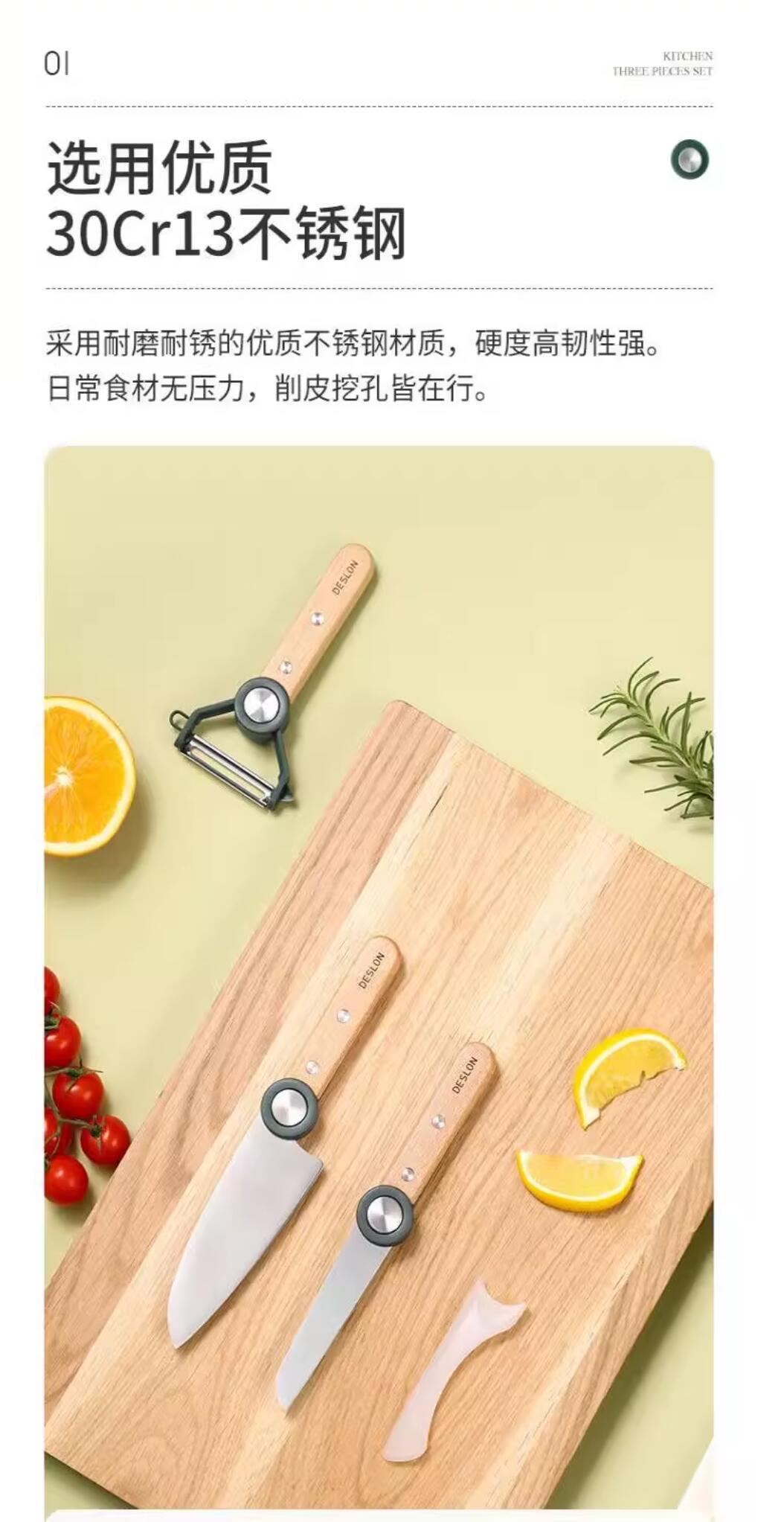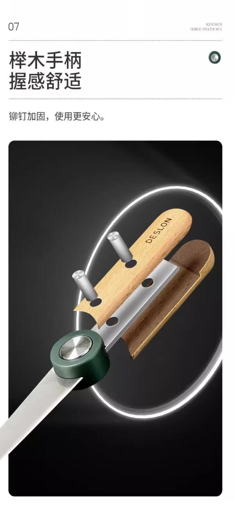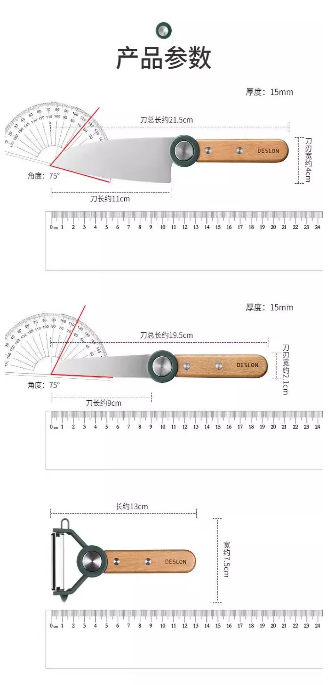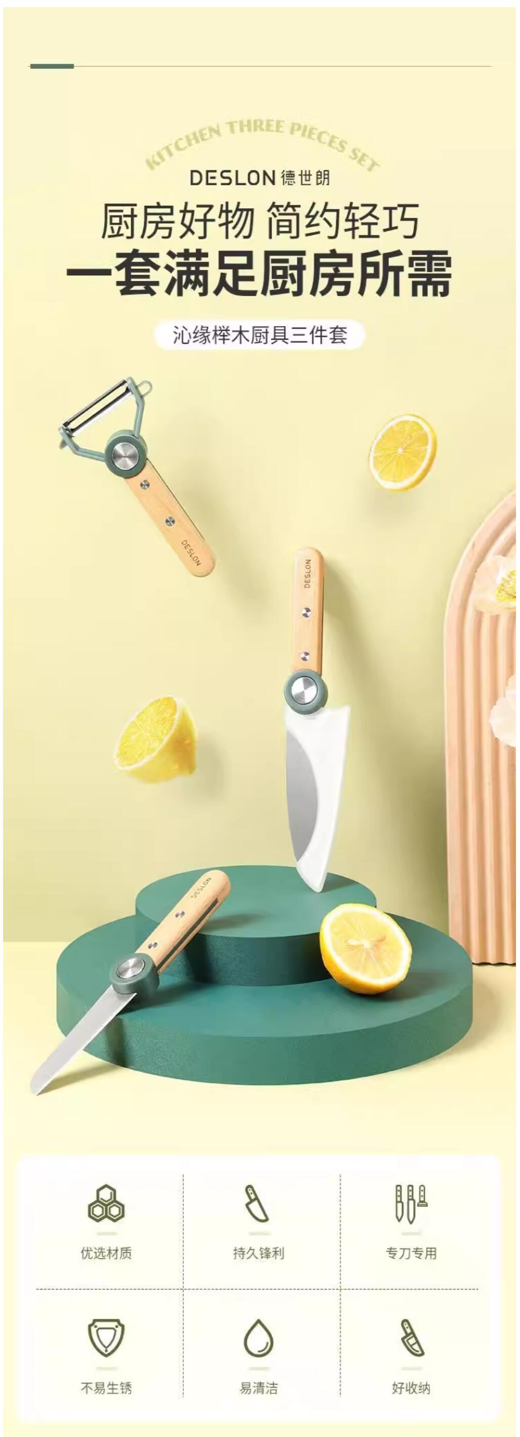 商品名称:德世朗(DESLON) 沁缘榉木厨具三件套 215mm/195mm/130mm DFS-TZ820-3A-JM