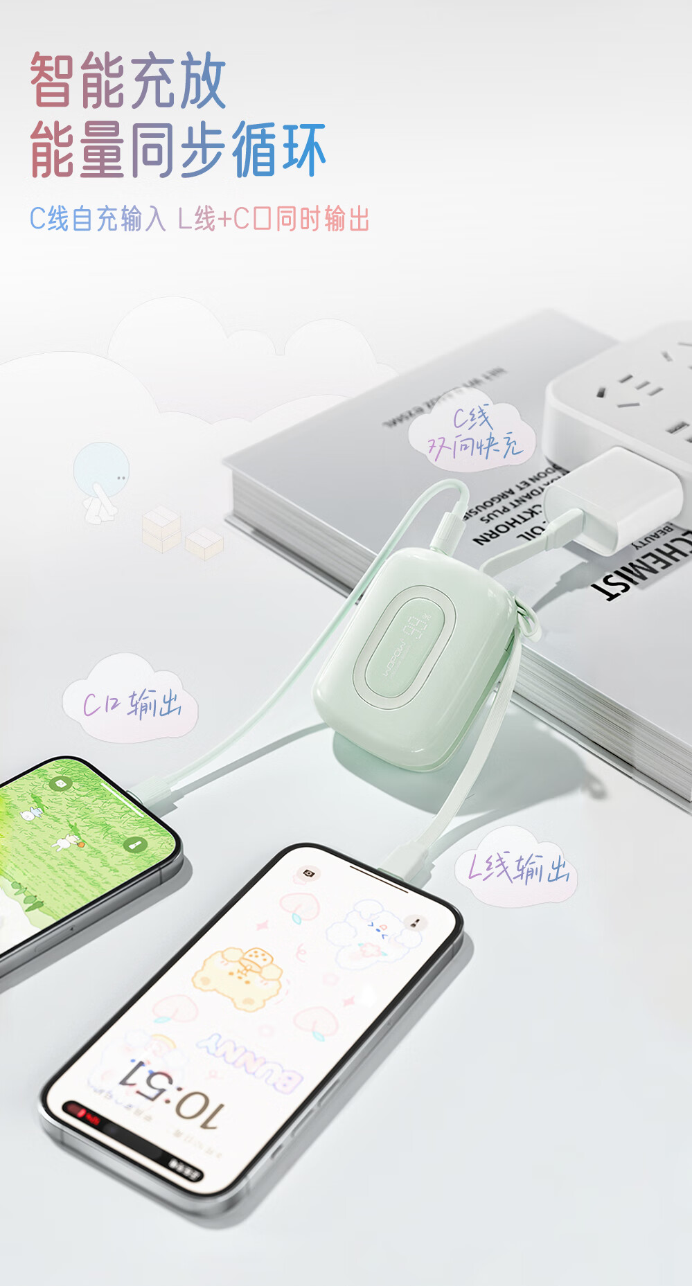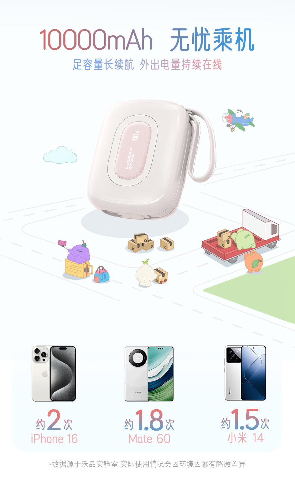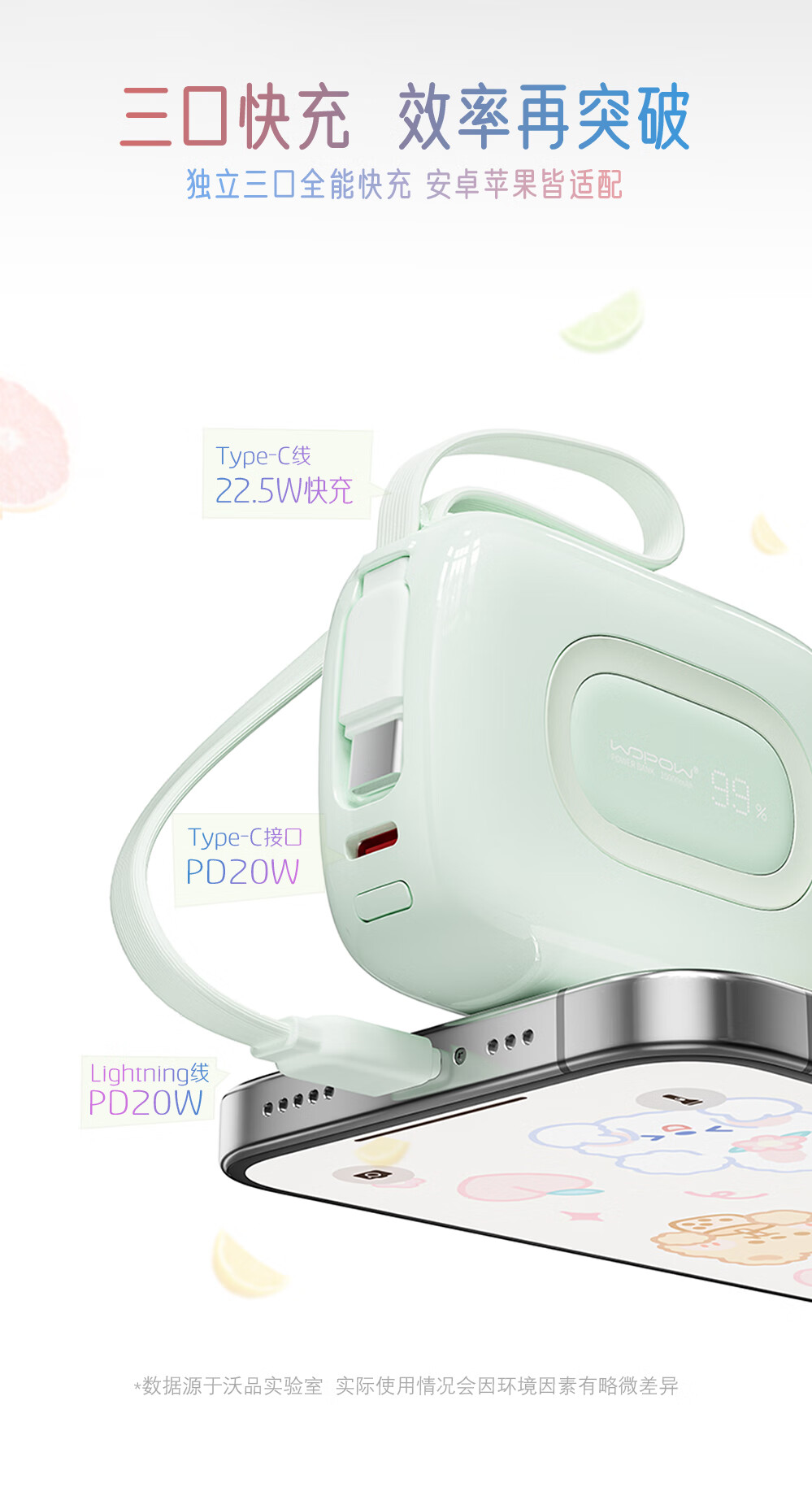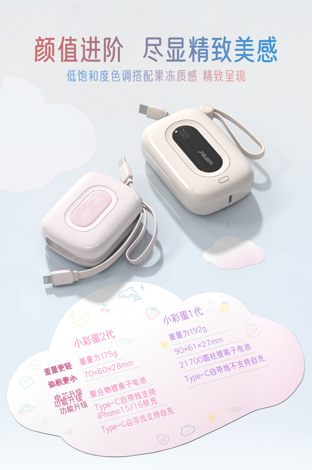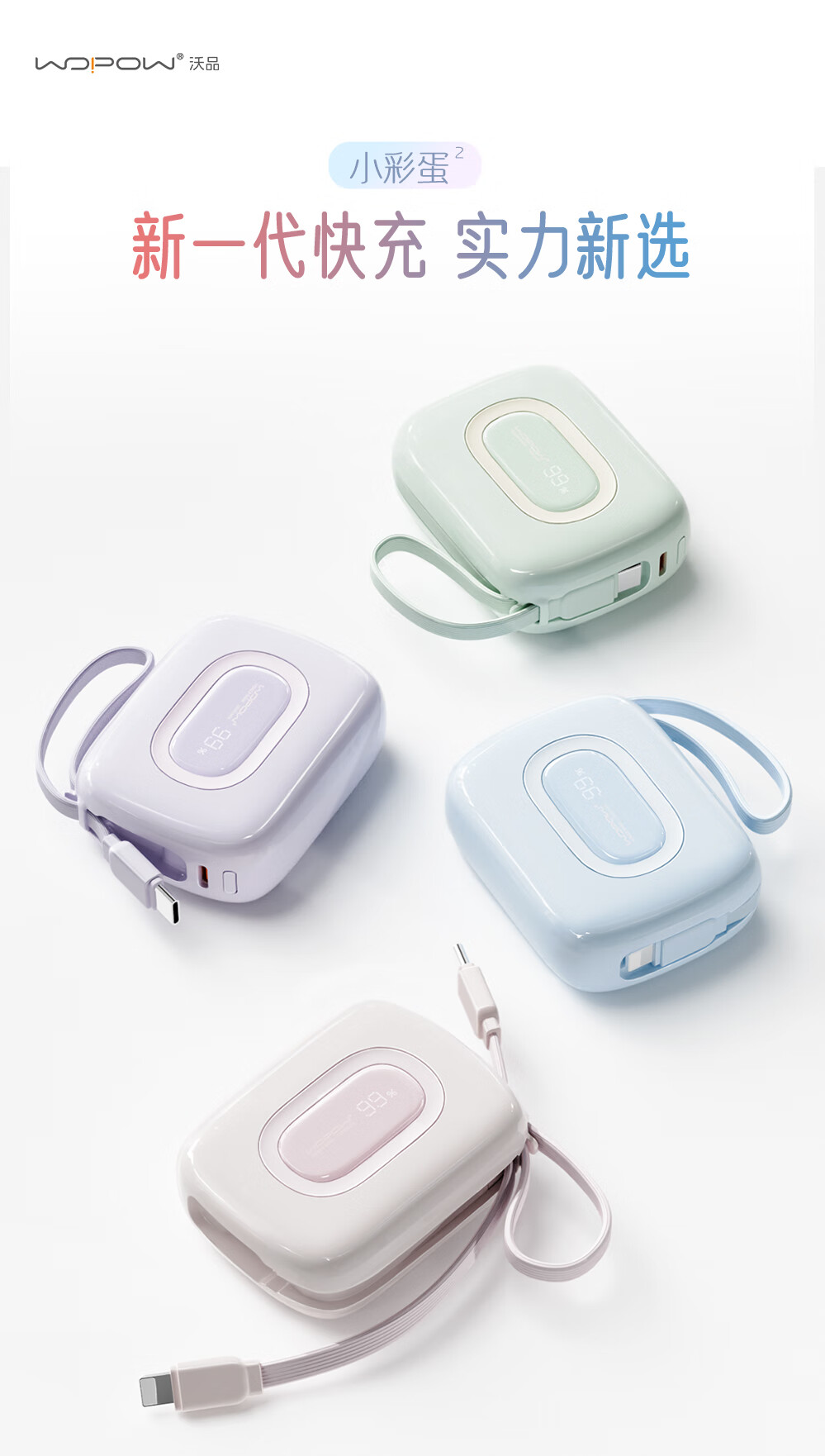 沃品 小彩蛋²快充自带线移动电源 10000mAh SQ63 (电商款)