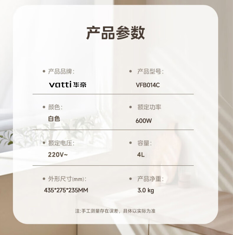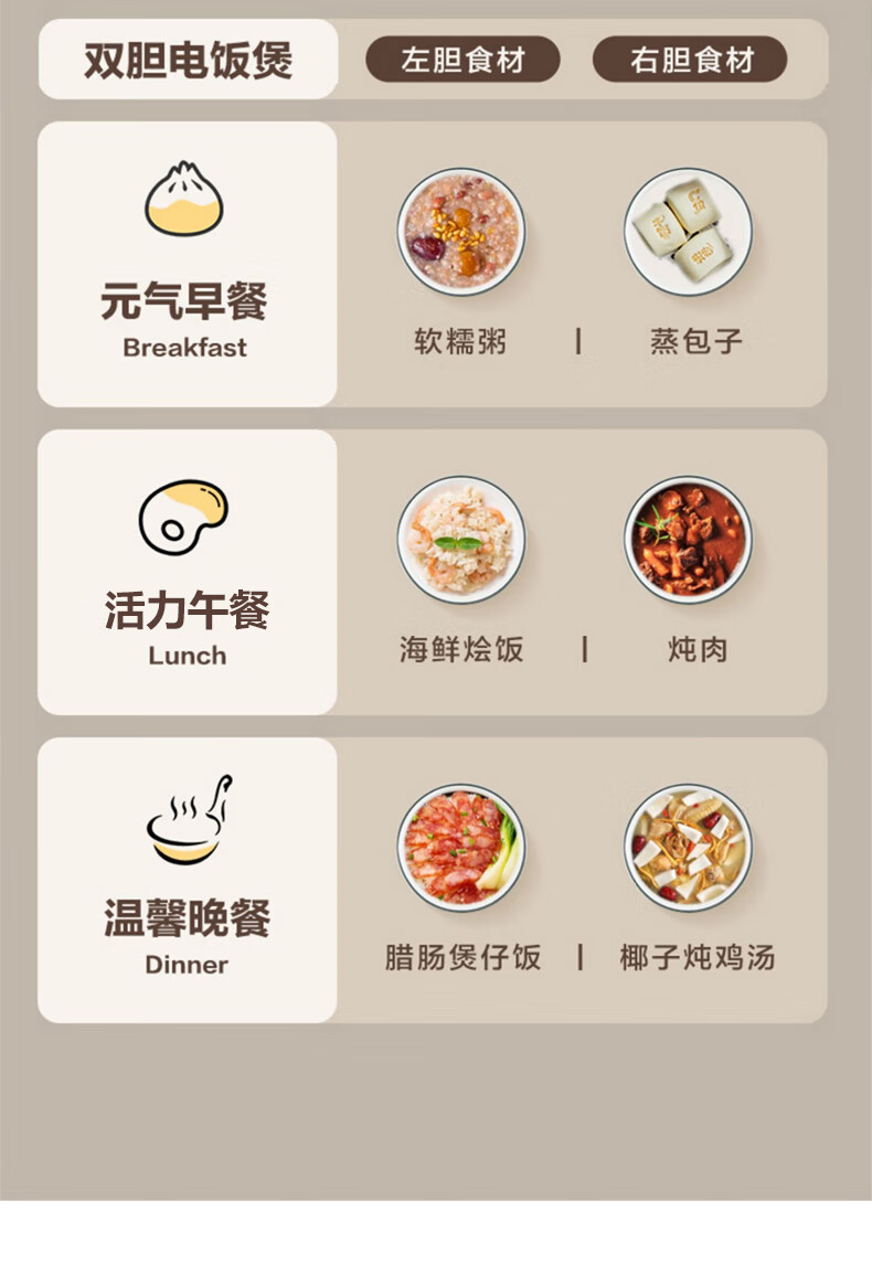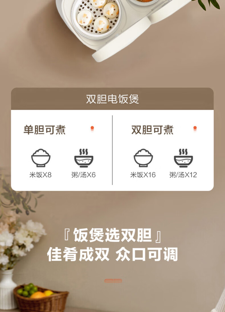 商品名称:华帝 双胆电饭煲 2L+2L VVFB019C