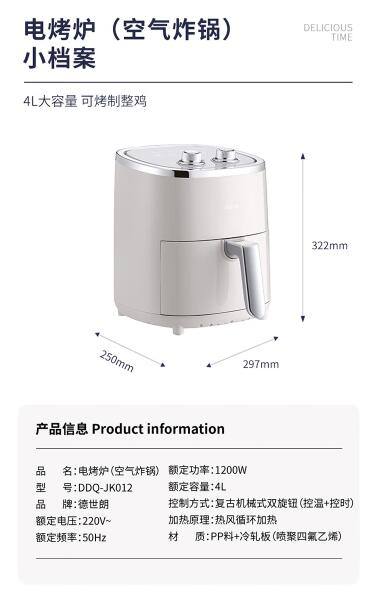 商品名称:德世朗(DESLON) 电烤炉(空气炸锅) 4L DDQ-JK012