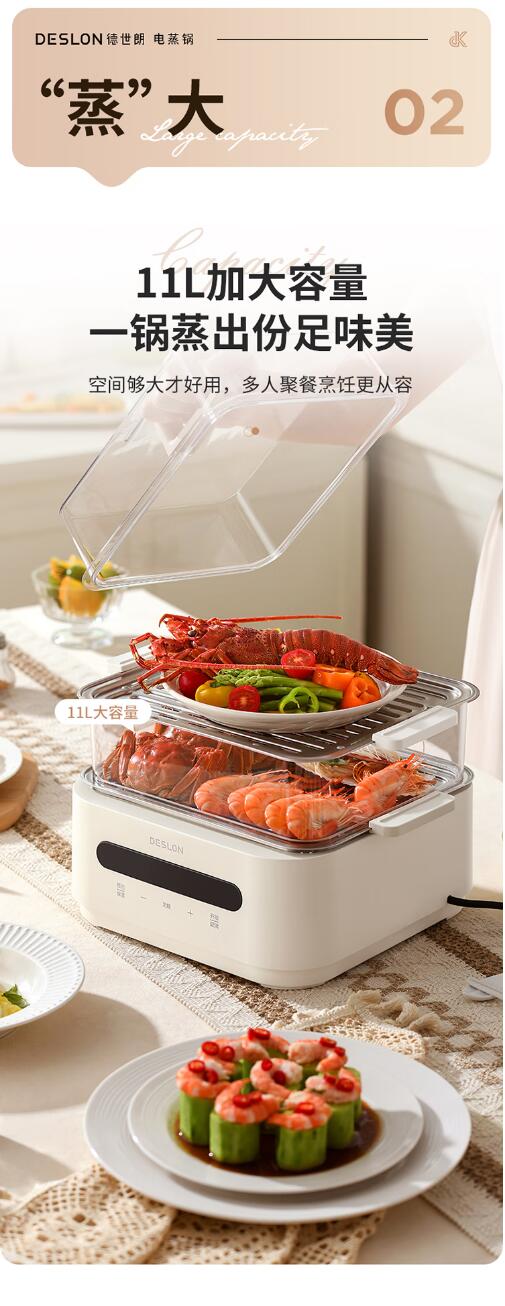 德世朗(DESLON) 多功能电蒸锅 11L DDQ-HG125