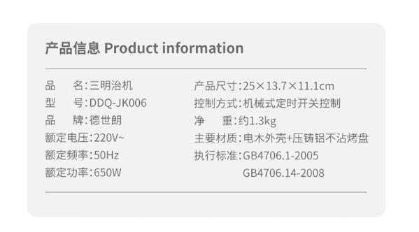 商品名称:德世朗(DESLON) 三明治机 DDQ-JK006