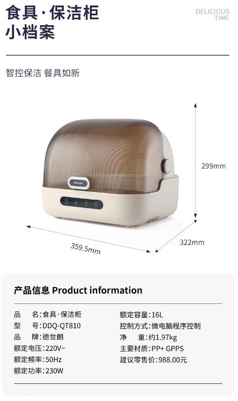 商品名称:德世朗(DESLON) 食具·保洁柜 16L DDQ-QT810