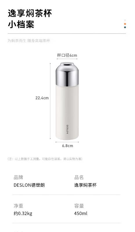 商品名称:德世朗(DESLON) 逸享焖茶杯 450ml DYXB-450