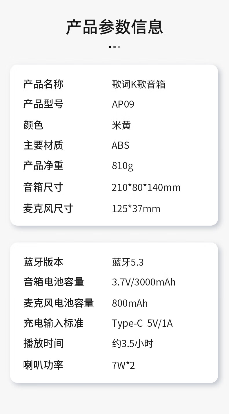商品名称:沃品(WOPOW)歌词K歌音箱 3000mAh AP09