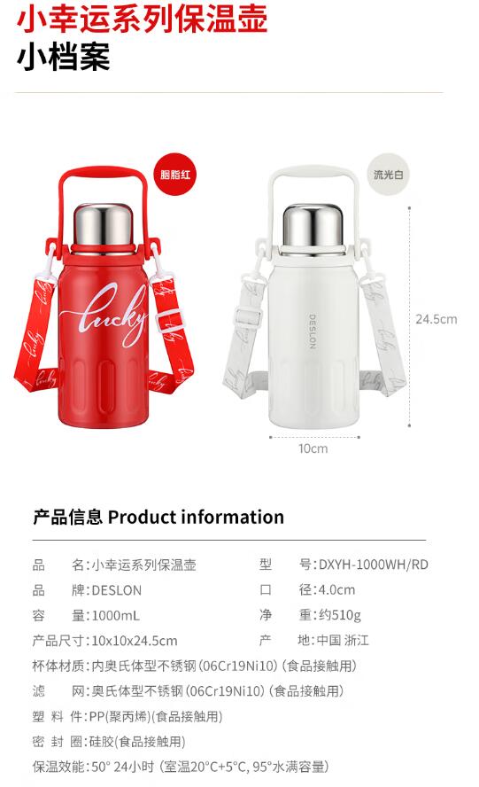 商品名称:德世朗(DESLON) 小幸运系列保温壶 1000mL DXYH-1000