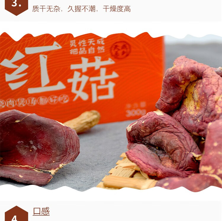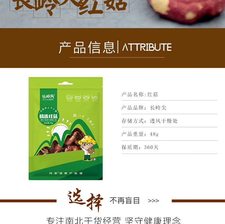 商品名称:长岭尖 珍奇系列精选红菇48g/袋