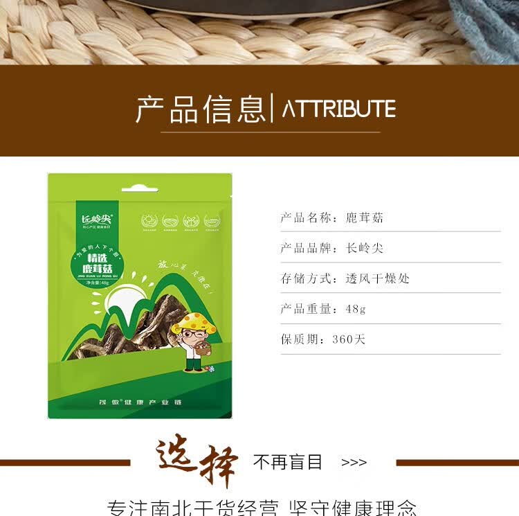 商品名称:长岭尖 珍奇系列精选鹿茸菇48g/袋