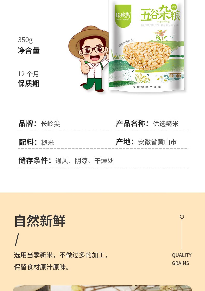 商品名称:长岭尖 优选系列糙米350g袋装