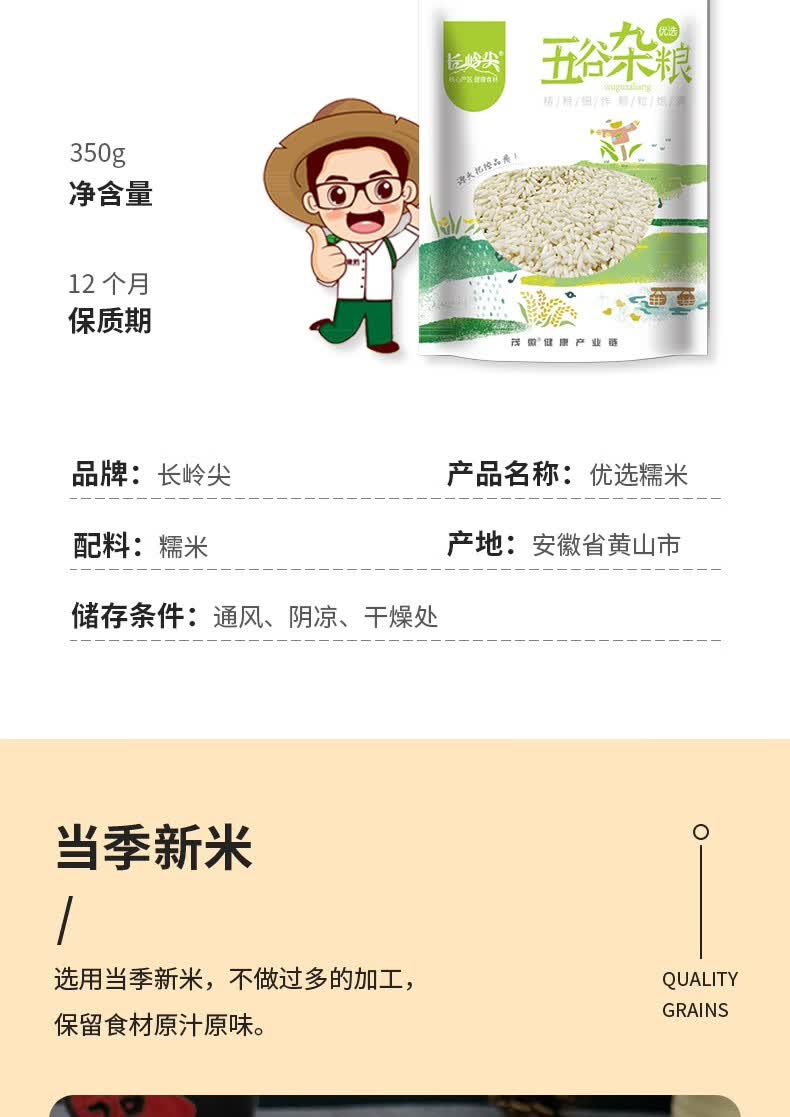 商品名称:长岭尖 优选系列糯米350g袋装