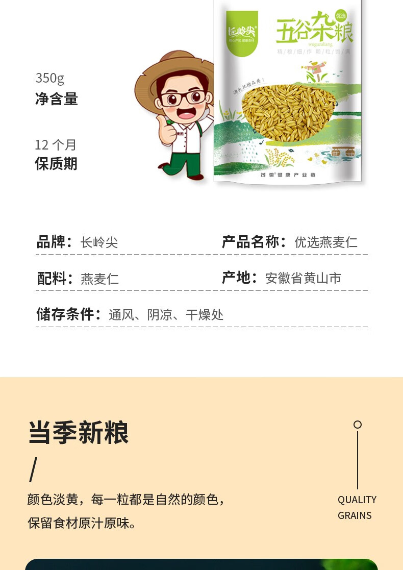 商品名称:长岭尖 优选系列燕麦仁350g袋装