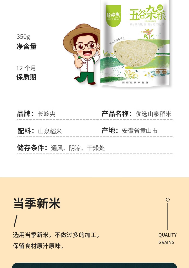 商品名称:长岭尖优选系列山泉稻米350g袋装