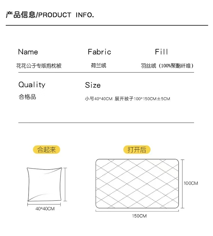 产品尺寸 :40*40cm 展开尺寸:100cm*145cm