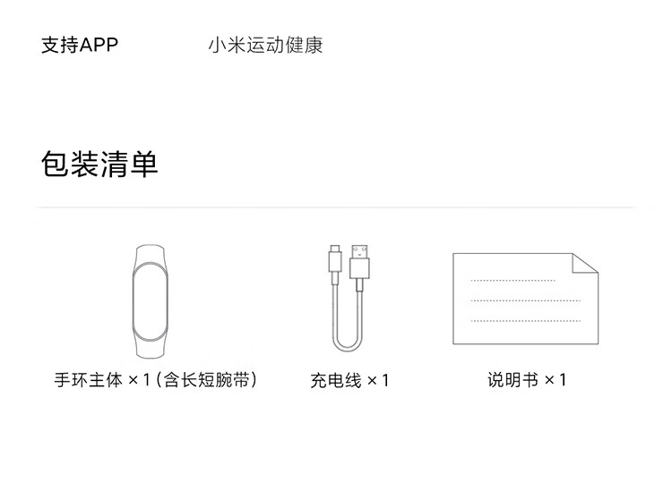 包装清单 :手环主体*1,腕带*1,说明书*1,充电线*1