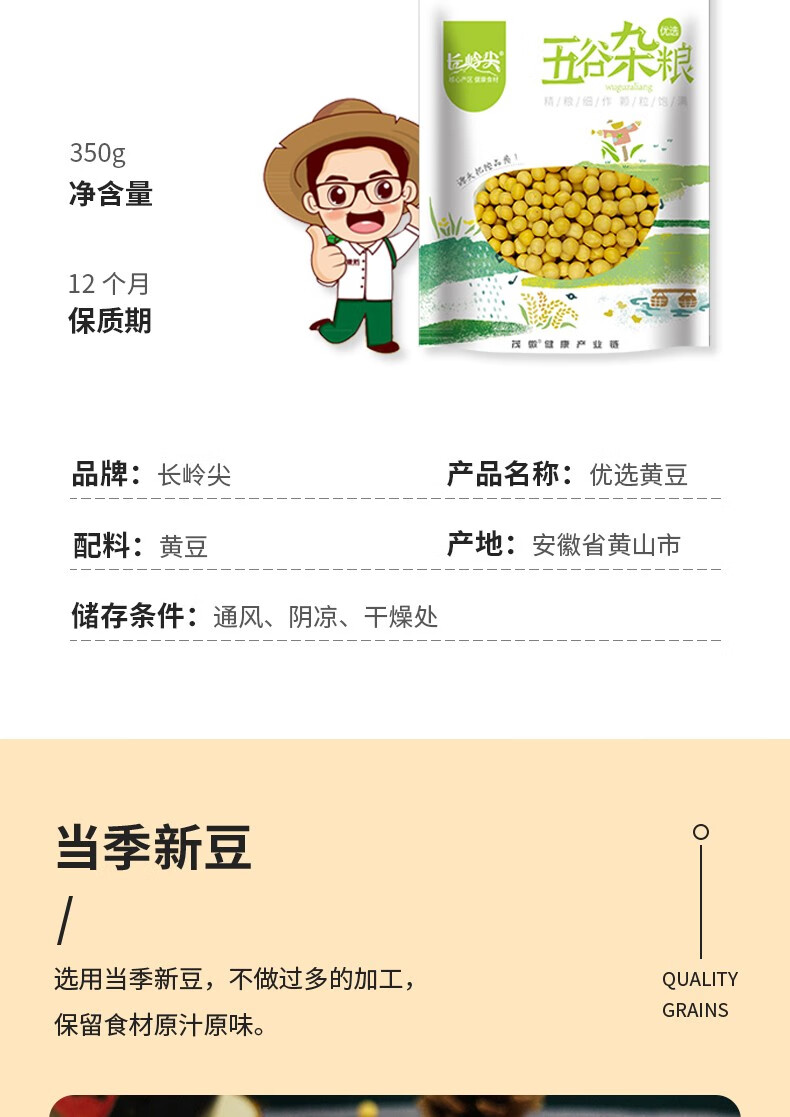 商品名称:长岭尖 优选系列黄豆350g袋装