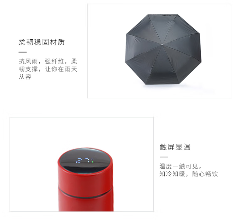 产品尺寸 :保温杯-6.5X6.5X22.9CM 雨伞-53.5CMX8K