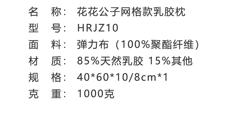 商品名称:花花公子 网格款乳胶枕 40*60*10/8cm HRJZ10