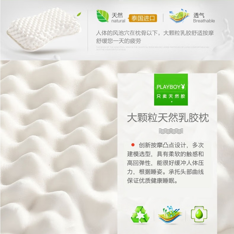 商品名称:花花公子 波浪按摩乳胶枕 一只 40*60*12/10cm HRJZ01