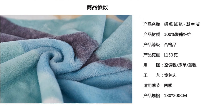 商品名称:花花公子 貂狐绒毯-潮生活 180*200cm HDHT07