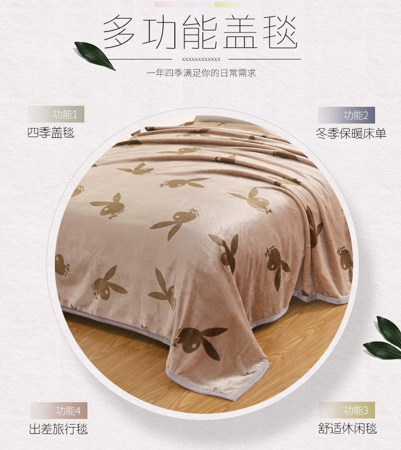 花花公子 专版加厚云毯-吉祥兔 180cm*200cm HYT01