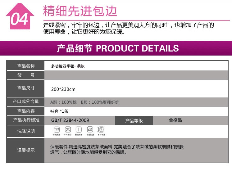 商品名称:花花公子 多功能四季毯-晨妆 200cm*230cm HSJT01