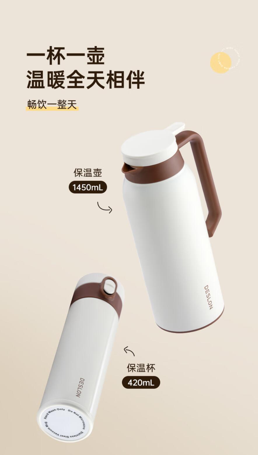 德世朗(DESLON) 甄选系列保温套装 保温壶-1450mL 保温杯-420mL DZX-TZ001