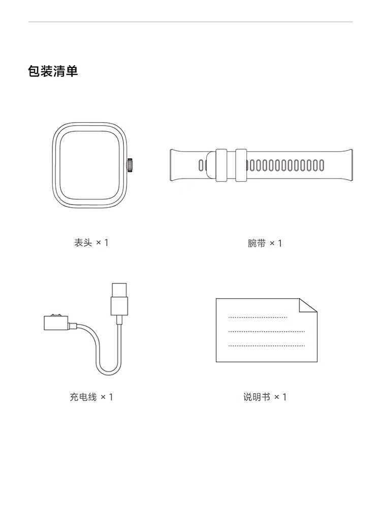手环主体*1,腕带*1,说明书*1,充电线*1
