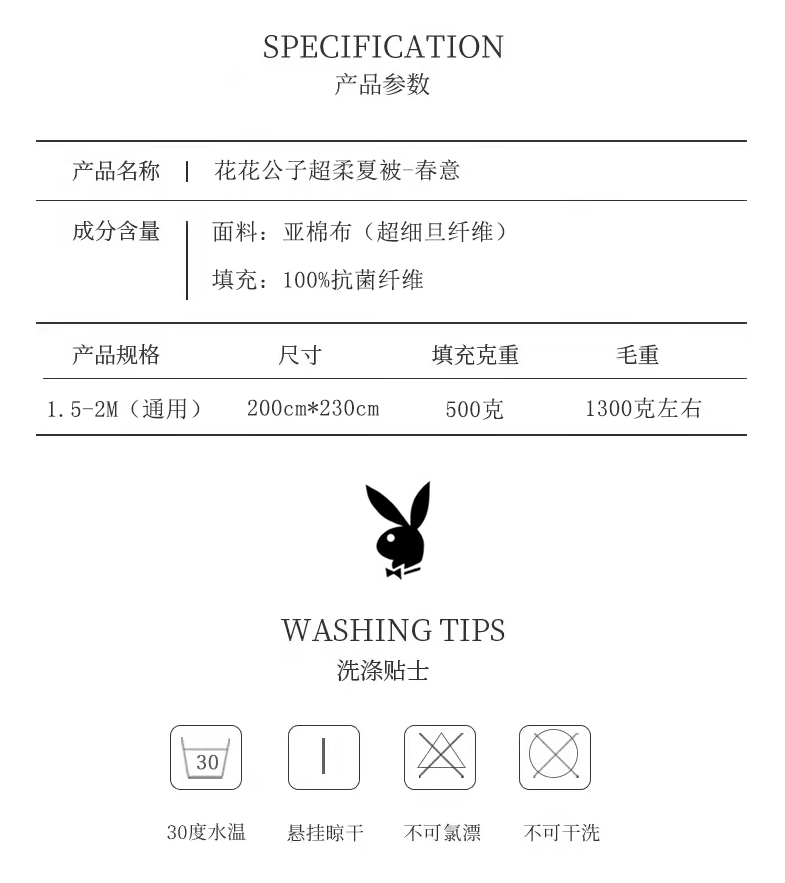 商品名称:花花公子 超柔夏被-春意 200cm*230cm HXBSF-2050