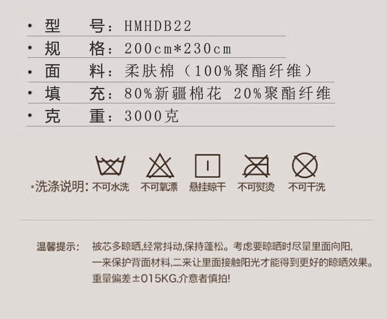 商品名称:花花公子 新疆棉花被 200cm*230cm HMHDB22