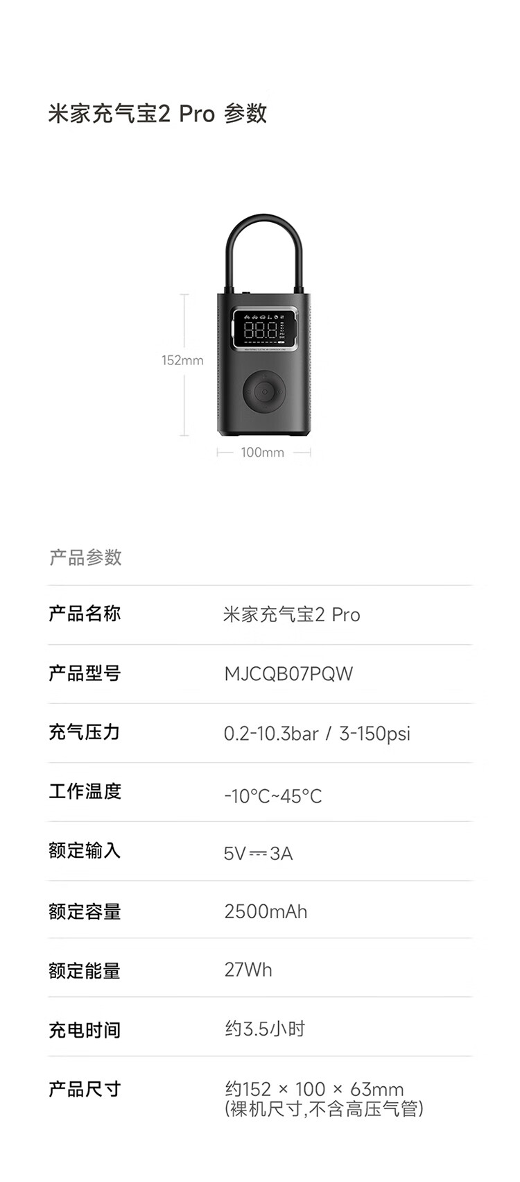 商品名称:小米 米家充气宝2Pro 大功率胎压检测